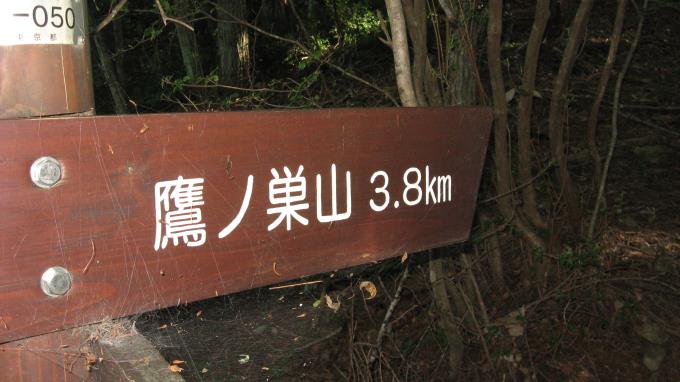鳥居の手前には「鷹ノ巣山3.8km」と書かれた案内板があります。