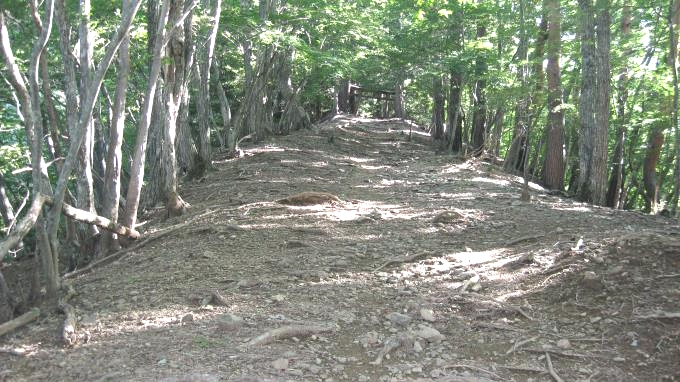 社殿を通り過ぎると登山道はどんどん狭くなり、一般的な登山道になります。