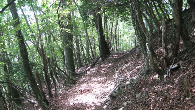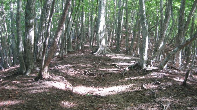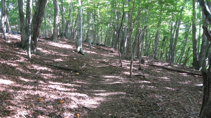 植林の森を抜けると自然林の気持ちの良い登山道になります。