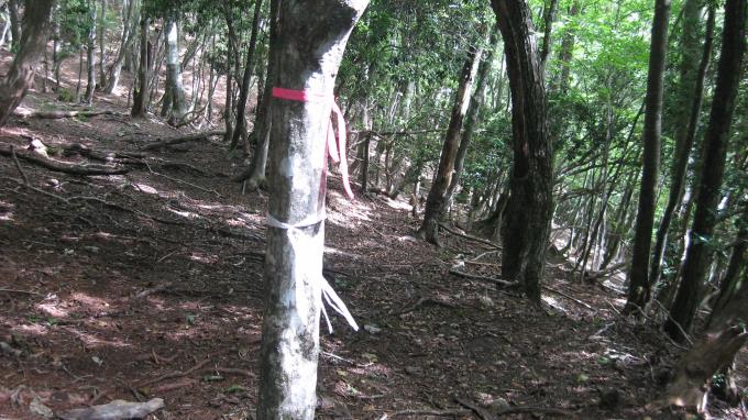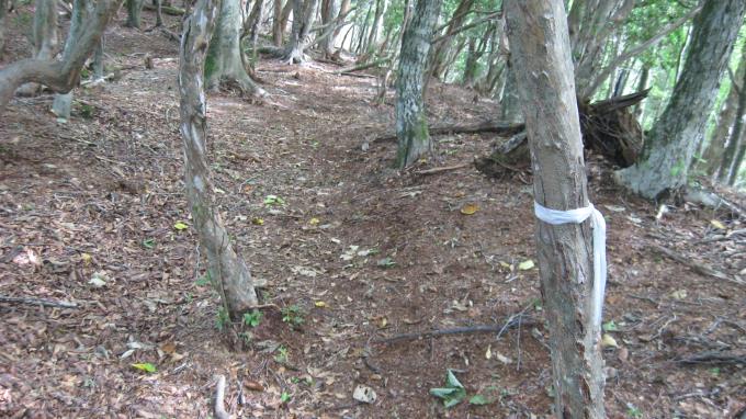 道が不明瞭な場所には木の幹に白いテープが結ばれていることもあります。
