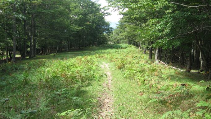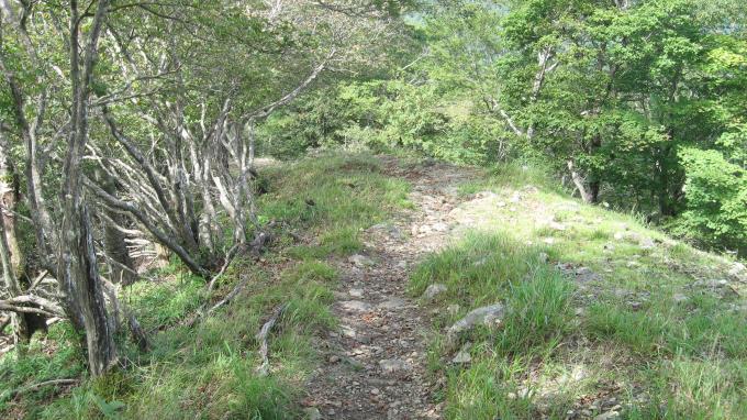 避難小屋への道は細いながらもほぼ緩やかな下りと上りの歩きやすい道です。