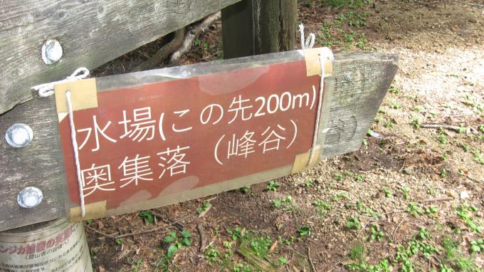 避難小屋の手前にある案内板を確認してから進みます。水場を経由して奥集落方面へ進みます。