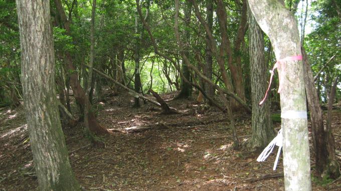 しいたけ園の先は自然林の森の中を歩くことになるのですが、踏み跡が不明瞭でよくわかりません。